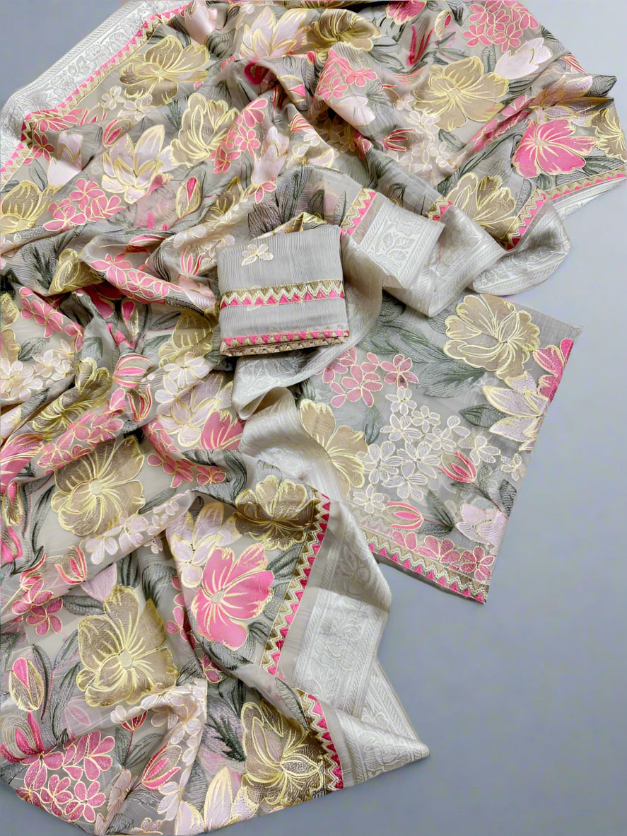 1. Lawn Cotton Embroidered Sequence front Back & Sleeves Shirt